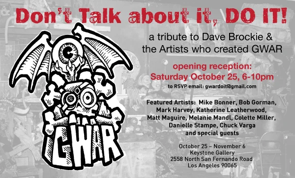 Curated by Keystone Art Space Director and artist Melanie Mandl and Keystone Gallery Director and artist Mark Harvey, the Fall 2014 exhibition "Don't Talk About It, Do It," focuses on the early 90’s. It was a time both Mandl and Harvey were documenting the group, along with photographer Katherine Leatherwood. The unique exhibition will include never before seen photographs and video footage, as well as past and present work from various members of GWAR.