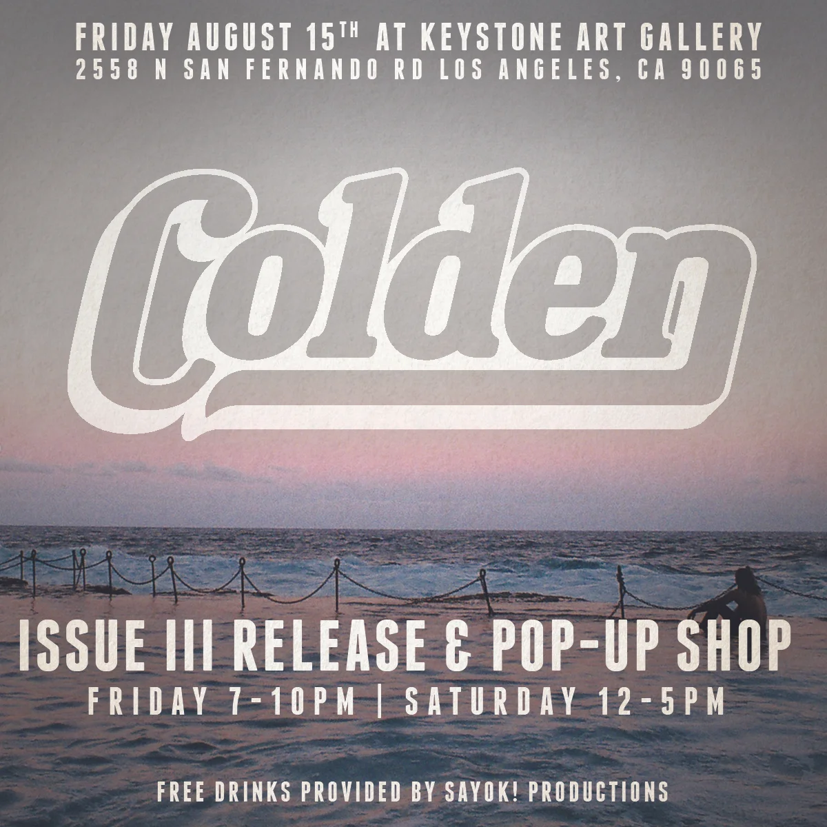✚ gCal ✚ iCal Keystone Gallery is please to be hosting Colden:"Colden, a locally purblished outdoor adventure zine is celebrating the release of it's third issue August 15. Come join us for surf clips, artwork, cold bevs and the Colden pop-up shop!"